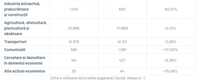 „alte cheltuieli pentru acțiuni generale economice și comerciale” – 3,32 miliarde lei, cu 140,15% mai mult decât în 2025;