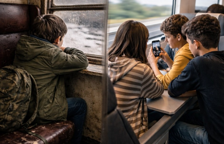 Văd imaginea asta și îmi aduc aminte că la vârsta lor eu făceam 18 ore cu trenul ca să ajung la bunici, pe ruta București – Huși. Optsprezece ore care uneori însemnau stat în picioare, pentru că nu mai erau locuri. Schimbam trenul la Crasna și urcam într-un personal cu două vagoane vechi, cu uși care nu se închideau bine. Iarna ningea înăuntru, vara aerul devenea greu, nu aveam telefon, nu aveam internet, nu aveam nimic care să scurteze drumul. Aveam doar răbdare și dor de bunici.