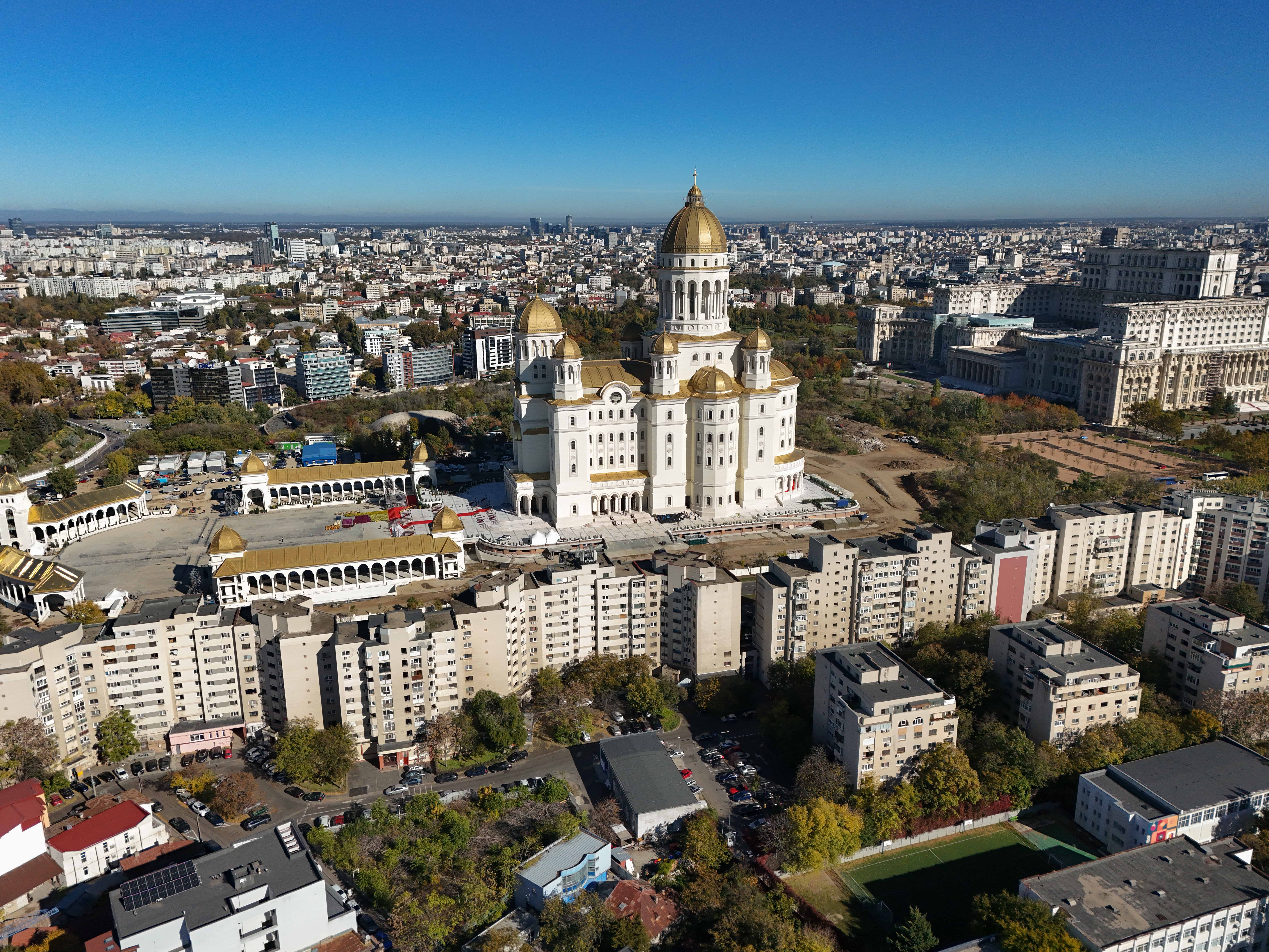 GALERIE FOTO. Catedrala Națională din București este inaugurată oficial duminică, marcând un moment important în viața religioasă și culturală a capitalei. Este unul dintre cele mai mari lăcașuri de cult ortodox din lume, cu turla principală de 120 de metri înălțime și o capacitate la slujbe mari de peste 100.000 de persoane în exterior.