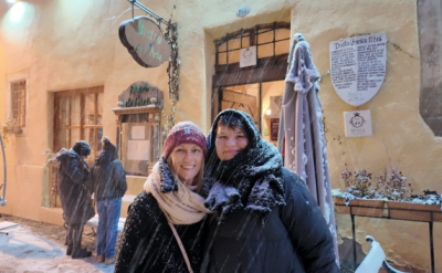E trecut de ora 12 și în restaurant sunt zgomotele care pregătesc ziua, însă toată lumea e calmă și pare că știe exact ce are de făcut. Zice Oana „stai să tipăresc meniul zilei și vin…” nu am înțeles de ce ăsta era un punct important al zilei până mai târziu când, trecând prin fața bistroului în seara cu ninsoare de copilărie, am auzit o doamnă care îi spunea celeilalte: „Eu mă uit în fiecare zi la prânz când publică meniul zilei, au niște ciorbe senzaționale..” După ce publică meniul, îmi spune „putem începe, dar sper să nu mă întrebi de unde am pasiunea de a găti…” Mă pufnește râsul, mi se pare că deja am făcut tot interviul. Ne așezăm lângă pian, în fața gemulețului acestei clădiri medievale în care totul poate fi durabil.
