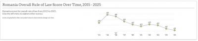 - România scade continuu în clasamentul global privind statul de drept (unde 2 indicatori sunt esențiali, cel privind justiția civilă și cea penală) - Poza 1 (am ajuns sub nivelul celui de acum 10 ani cu calitatea justiției);