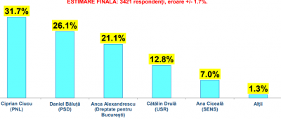 Astfel, voturile bucureștenilor pentru poziția de Primar General al Capitalei se distribuie după cum urmează: