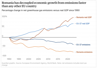 D-nul președinte Dan ar trebui să-și mai schimbe consilierii. România este una dintre puținele țări din Europa Centrală și de Est care au redus semnificativ emisiile. Emisiile noastre au scăzut cu 75% din 1990, în timp ce PIB-ul s-a dublat. Este adevărat că decuplarea a început sub forma colapsului industrial din anii 1990, dar apoi a accelerat după aderarea la Uniunea Europeană și prin stimulente investiționale. Așa că nu avem de ce sa ne mișcăm mai lent. Dimpotrivă, trebuie să construim cât mai mult și cât mai repede, pentru că nu vom avea o economie în creștere dacă nu avem acces la energie ieftină.