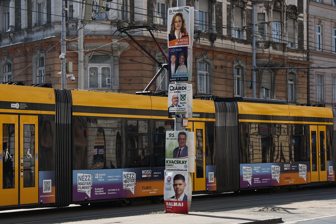 Azi, 12 aprilie, sunt organizate alegeri parlamentare în Ungaria. Viktor Orban se confruntă cu Peter Magyar/ foto: afișe electorale în Budapesta. sursa foto: Profimedia